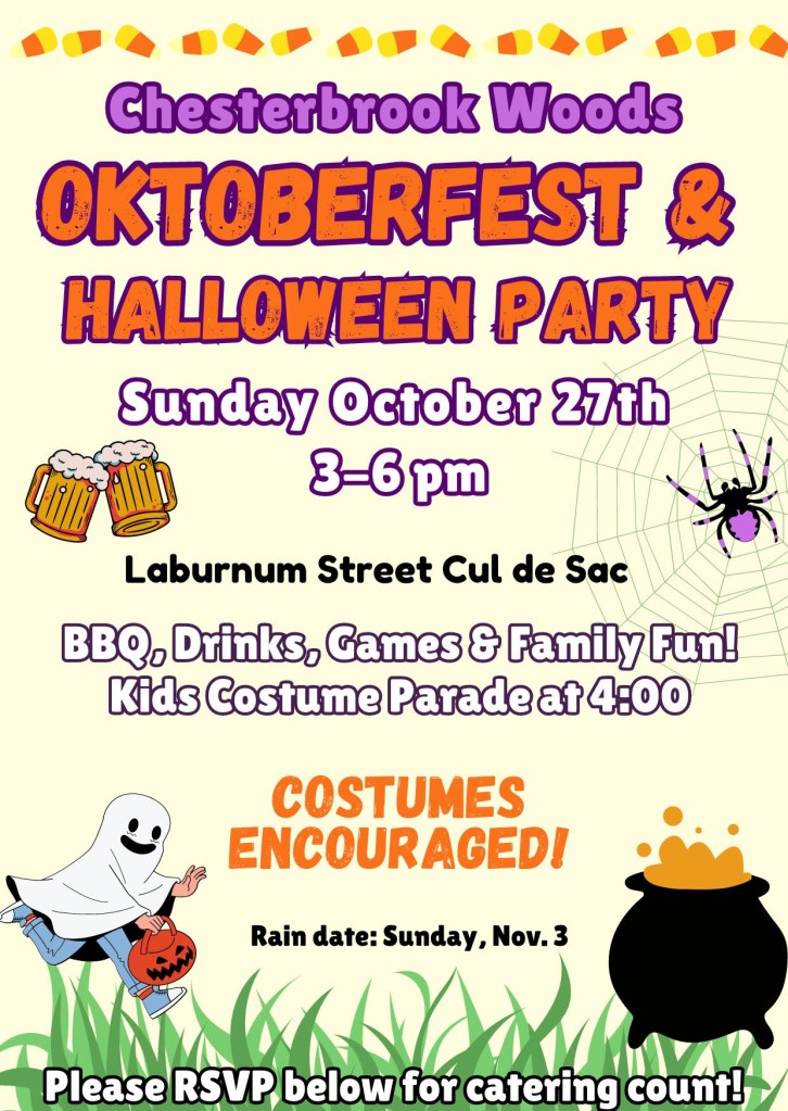 We are excited to invite you to the annual Chesterbrook Woods Oktoberfest party on Sunday, October 27th from 3-6pm at the Laburnum Street Cul de Sac!